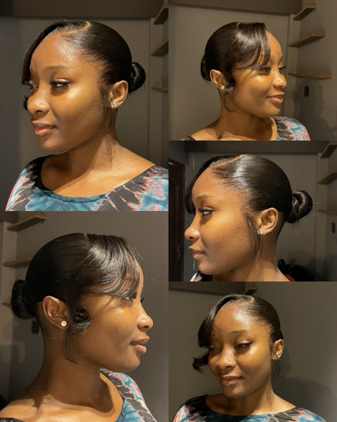 This install is with glue and usually last 5-7 days with proper maintenance . Kindly know your skin type when booking this service . This helps your stylist know the right amount of glue to ensure your install lasts. •This service mimics your natural hairline or creates a natural hairline that would suit the clients face , kindly note , your wig may need more plucking under this service . •Prices start from GHS 500. Final pricing may vary depending on the complexity of the style. Simple styles are fixed at GHS 500, while more intricate or time-consuming styles may cost more.EG (Updos)