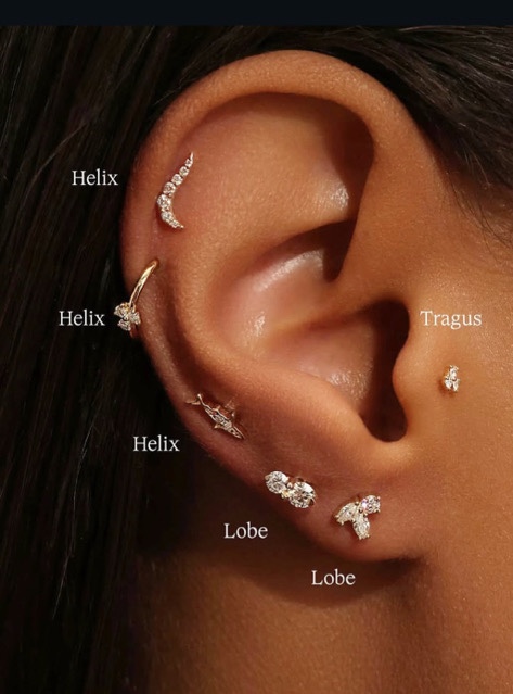 EAR PIERCINGS ✨✨✨✨✨✨✨✨✨ Lobe 80gh Stacked lobe. 100gh Tragus 150gh Helix. 150gh Conch. 200gh Daith 200gh Rook. 200gh Snug 300gh Forward Helix. 200gh Industrial. 300gh Flat Conch 200gh Surface Tragus 200gh. AFTERCARE KIT IS BOUGHT SEPARATELY FOR GHC 150. Thank you!